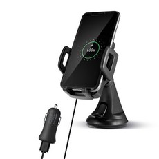 주파집 차량용 센서 고속 무선 충전 거치대 CWC01 + 퀄컴 3.0 듀얼 고속충전 시거잭 세트, 블랙, CWC01(거치대)